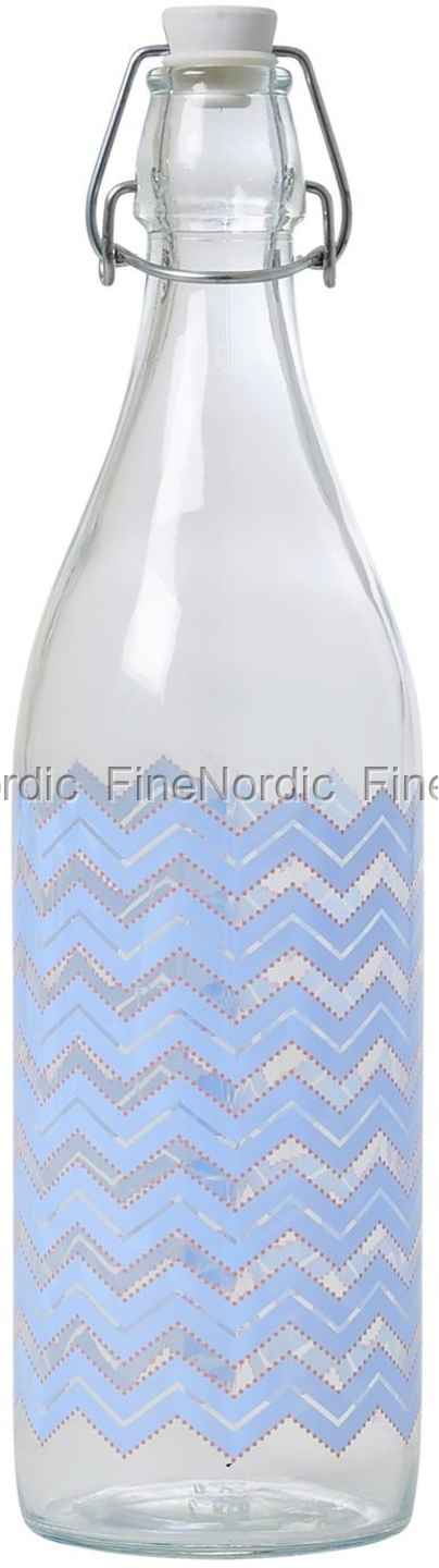 Glasflasche mit Chevron Druck Weichem Blau 1 Ltr, von RICE.