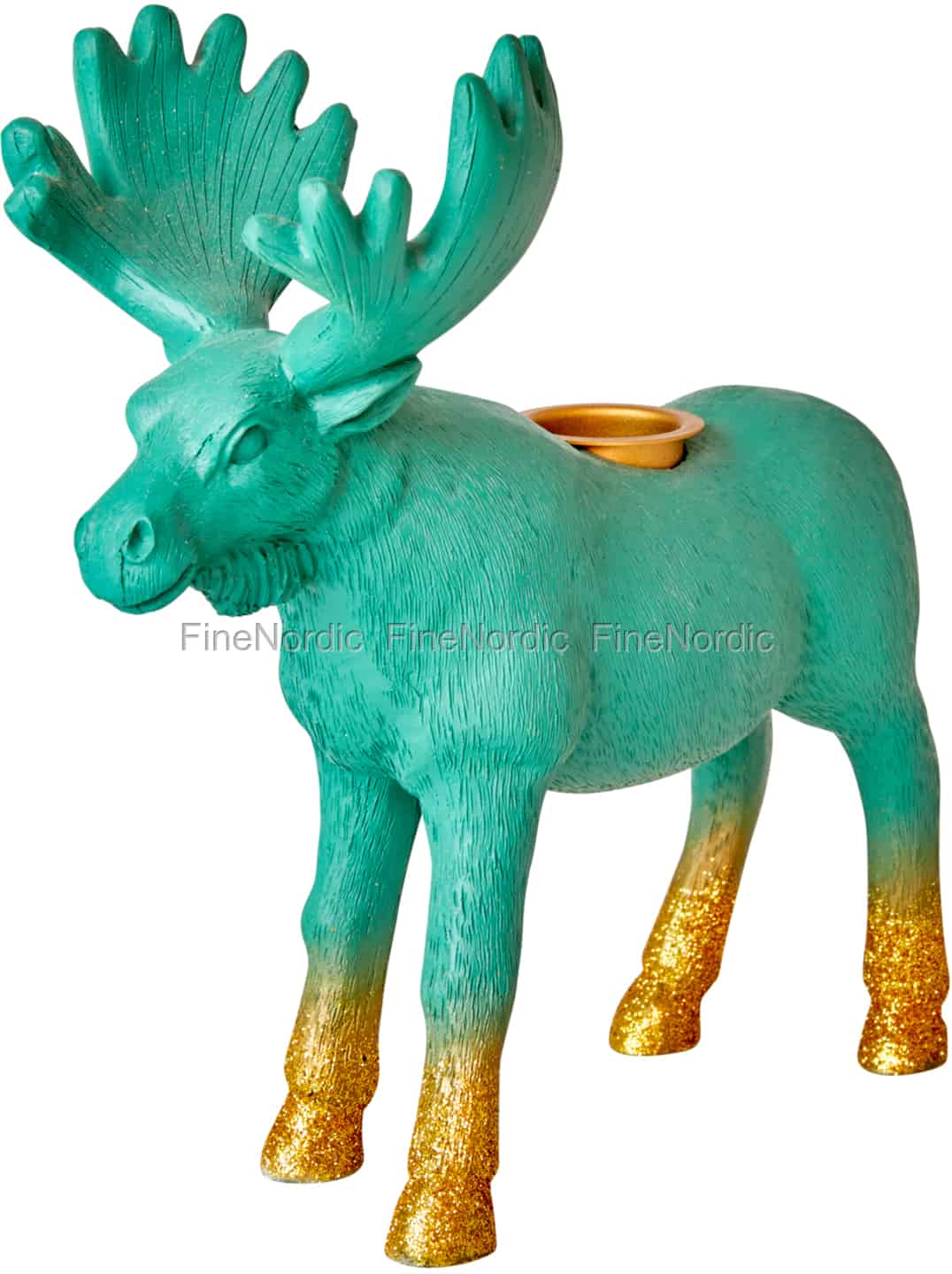 Mögen Sie Dekorationen, die etwas außerhalb der Norm liegen? Dann ist dieser fantastische Rice Kunstharz Kerzenhalter in Elch Form genau das Richtige für Sie. Die glitzernden goldenen Beine und der eindrucksvolle türkisfarbene Körper machen diesen Elchkerzenhalter zu einem absoluten Hingucker in Raum. Fügen Sie einfach eine Kerze mit einem Durchmesser von 2,2 cm hinzu und lassen Sie diese Schönheit von der Fensterbank oder vom Regal oder als Mittelstück in der Mitte des Tisches leuchten. Dieser Kunstharzkerzenhalter in Elch Form von Rice ist auch eine wunderbare Geschenkidee für die etwas außergewöhnliche Deko-Liebhaberin in Ihrem Freundeskreis.