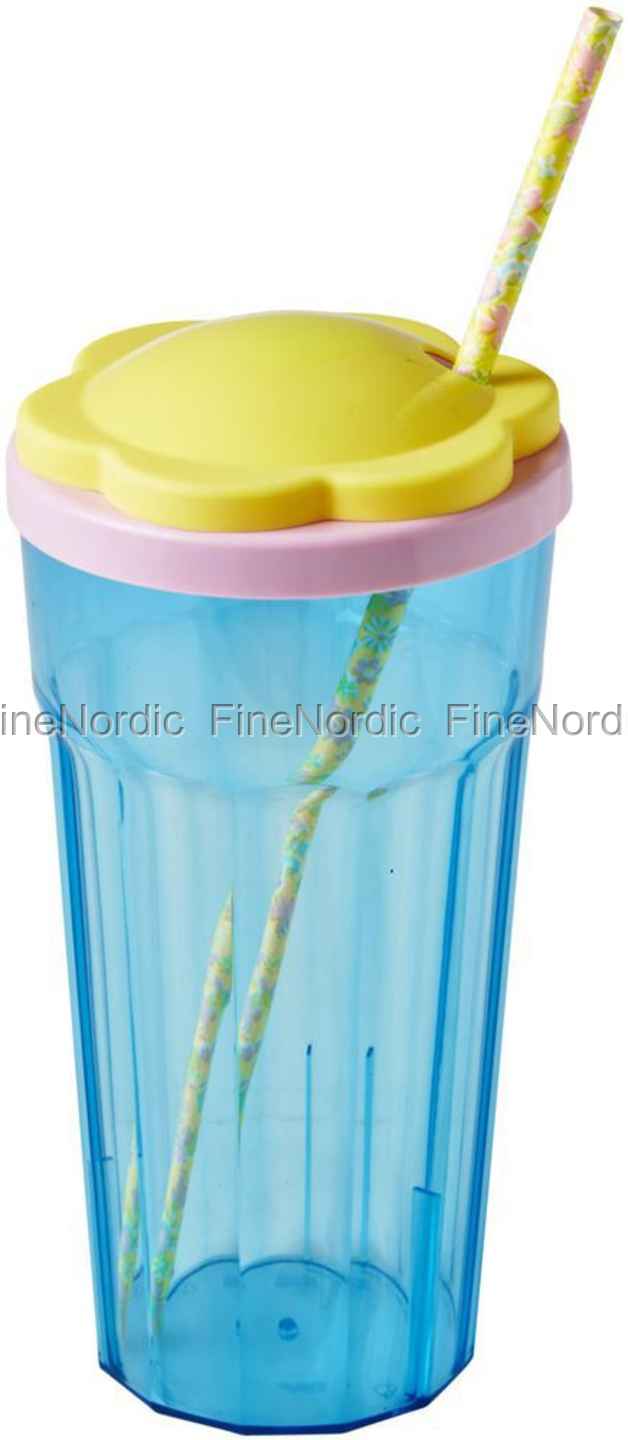 Hohes Acryl Glas mit Deckel - Flower - Blau, von Rice.