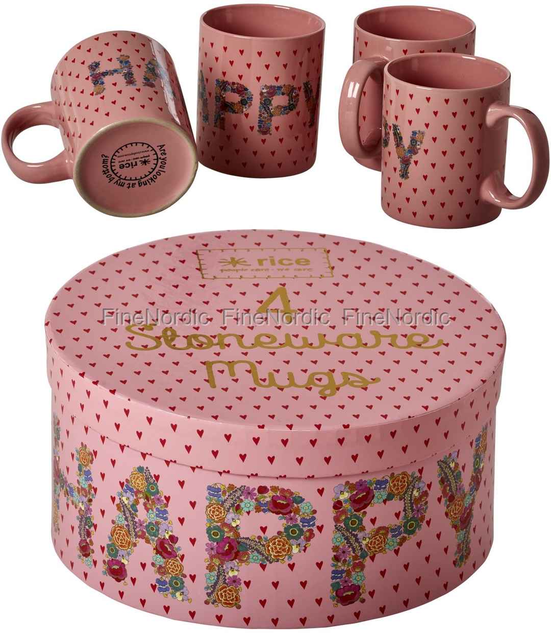 Rice Keramik Becher - Happy in Geschenkbox - 4er Set