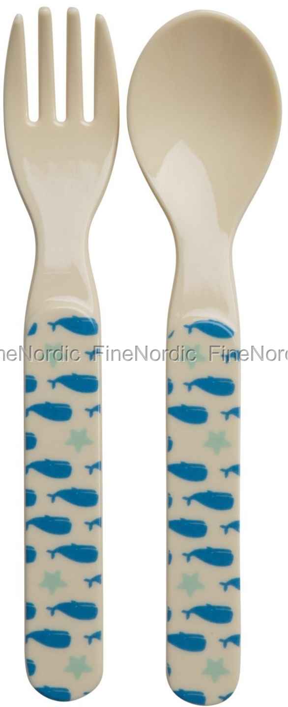 Rice Melamin Kinderlöffel und Gabel - Wal und Seestern