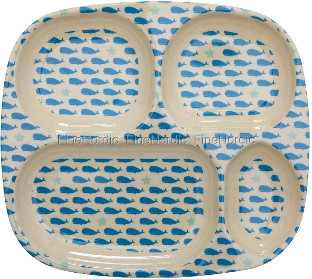 Rice Melamin Kinderteller mit 4 Fächern - Wal und Seestern