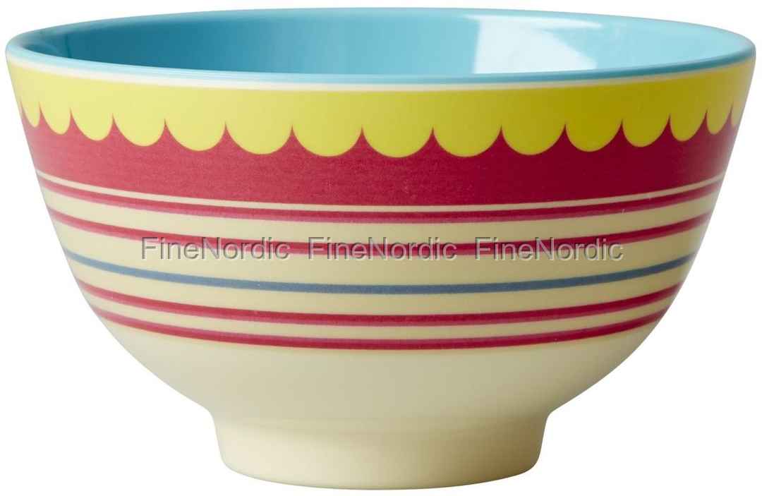 Kleine Melamin Schüssel - Melamine Two Tone - Striped Print Blue/Red/Yellow, von Rice.