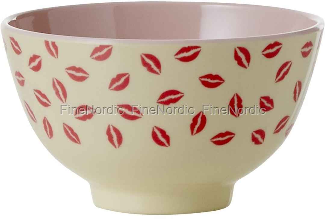 Kleine Melaminschüssel mit Rotem Kiss Print - Creme / Rosa, von Rice.