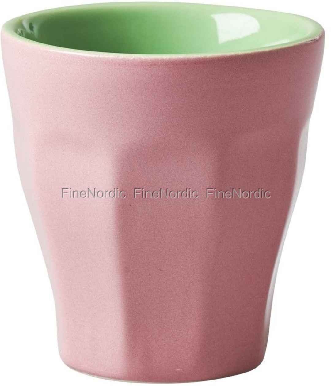 Kleiner Keramik Espressobecher in Rosa und Soft Green, von Rice.