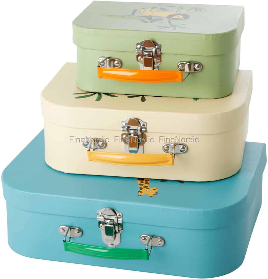 Rice Koffer aus Karton - Dschungel Tiere - Blau, Creme und Grün - 3er Set