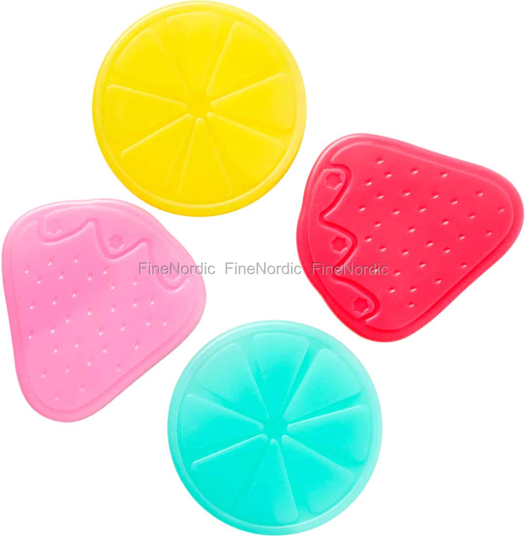 Diese witzigen Kühlakkus von Rice in der Form von Erdbeeren und Zitronenscheiben eignen sich hervorragend für Brotdosen oder kleine Kühltaschen. Sie müssen sie zuerst in den Gefrierschrank legen bis die Flüssigkeit in den Kühlakkus gefroren ist, und dann können Sie sie, wann auch immer Sie Getränke oder Essen gekühlt halten möchten, benutzen. Das Set beinhaltet vier verschiedenen Farben und zwei der Kühlakkus sind in Erdbeerform und zwei sehen aus wie Zitronenscheiben. Dieses 4-teilige Kühlakku Set ist sehr praktisch, wenn Sie ein Picknick machen wollen oder einen Nachmittag am Strand verbringen möchten.