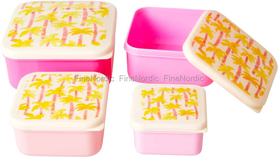 Lebensmittelboxen sind immer großartig zu besitzen, vor allem aber, wenn mehrere Paare kleiner Füße in Haus herumlaufen. Das 4-teilige kleine Palm Tree Print Lebensmittelboxen Set von Rice ist genau das, wofür Rice steht: Fun, Funky, Functional! Das Set besteht aus vier verschiedenen Größen an Boxen und alle haben den schönen Palm Tree Print auf dem Deckel. Jede Box ist in einem anderen Rosa Ton gehalten. Wenn Sie in den Zoo oder in den Park gehen wollen, dann können Sie ein paar Leckereien für die Kinder in ihnen einpacken. Bewahren Sie Essensreste sicher in Ihnen auf, bis Sie diese am nächsten Tag verzehren möchten. Sie können sie auch für das Pausenbrot Ihrer Kinder verwenden oder um sie bei einem Picknick mitzunehmen. Ganz toll ist auch, dass Sie sie außerdem auch mit den anderen Palm Tree Print Produkten kombinieren können. Gerne können Sie sich alle anderen Melaminprodukte dieser attraktiven Melaminserie in unserem Webshop anschauen.