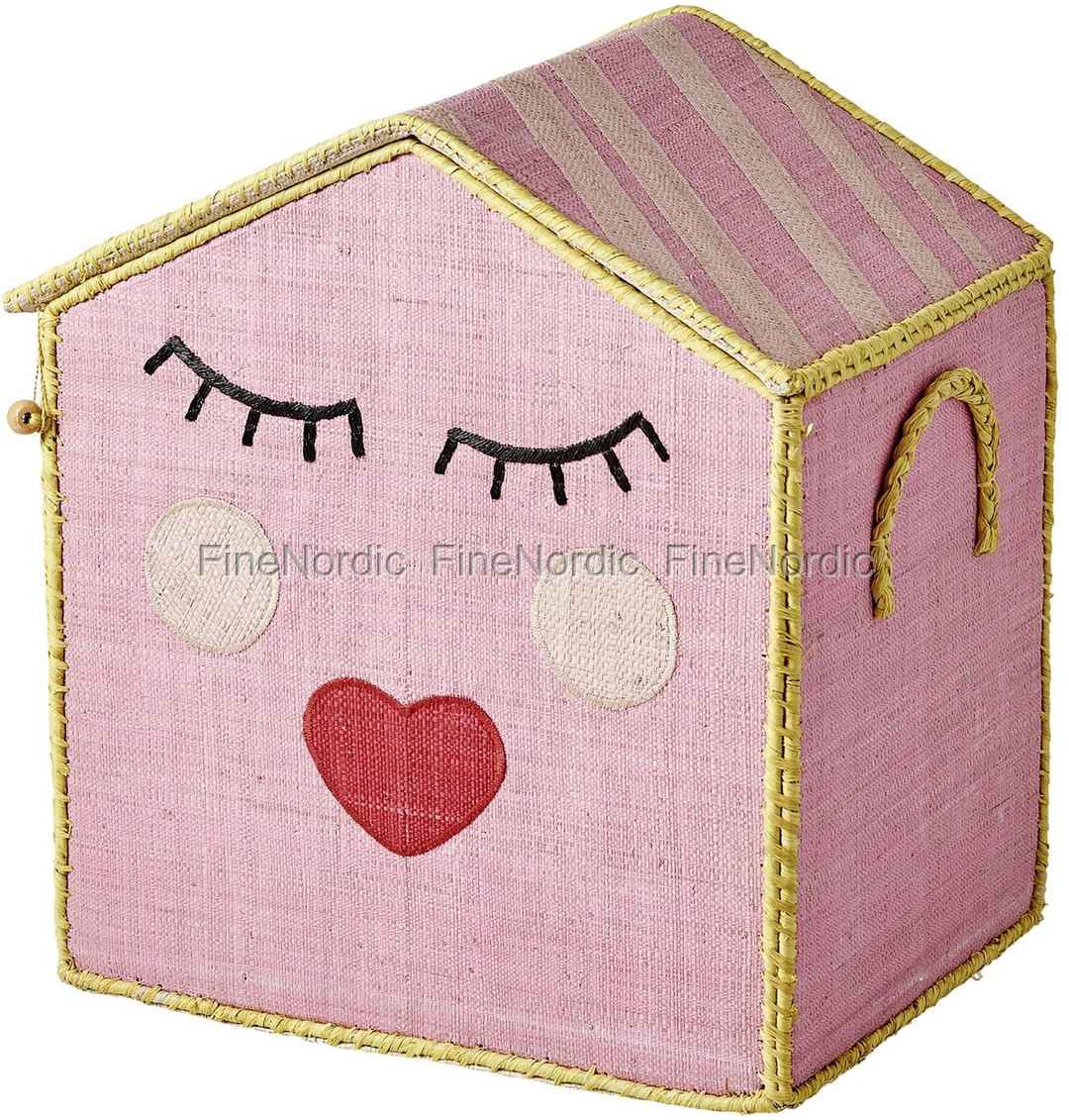 Rice Raffia Spielzeugkorb - Koralle - Süßem Gesicht - Medium