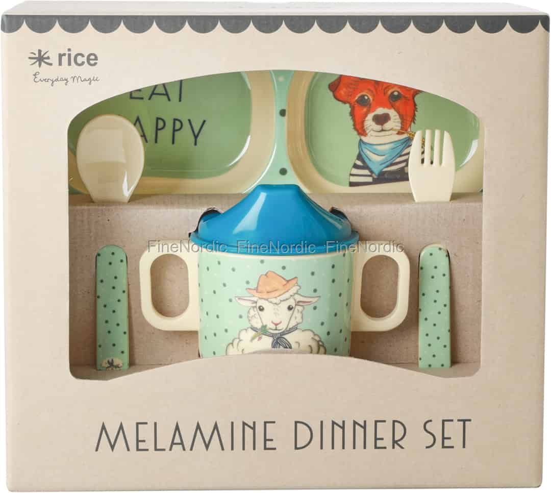 Rice Melamin Baby Geschirr-Set im Geschenkbox - Farm Animals Grün - 4 Teile