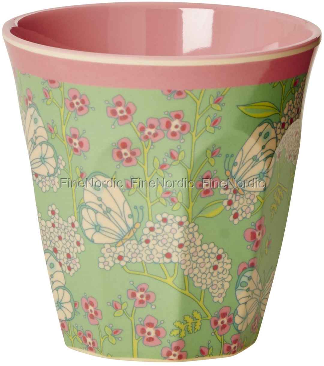 Melamin Becher - Medium Cup Two Tone mit Butterfly and Flower Print, von RICE.