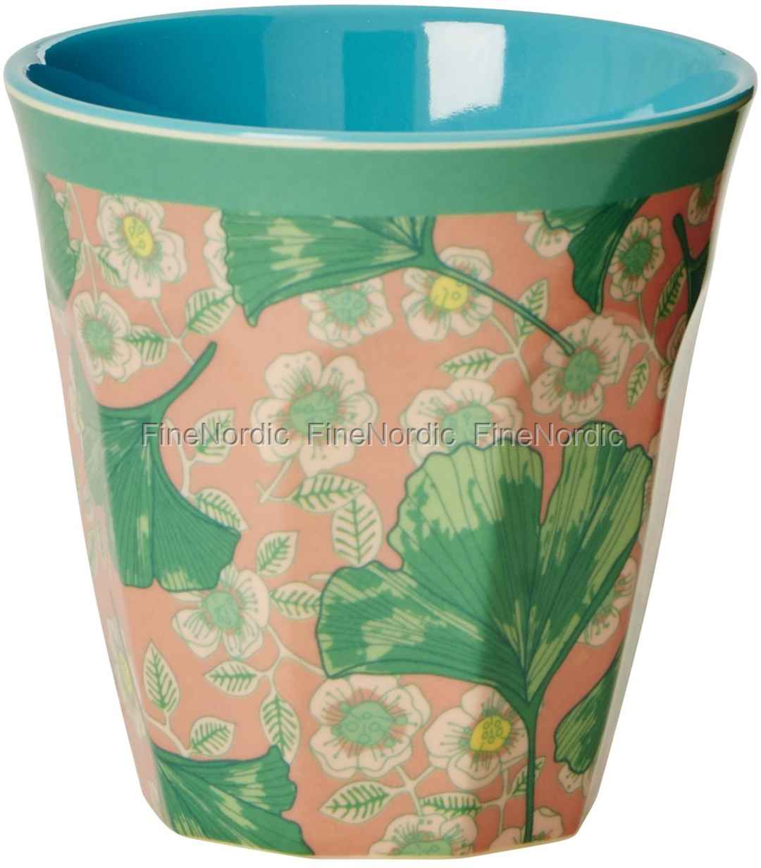 Melamin Becher - Medium Cup Two Tone mit Leaves and Flower Print, von RICE.