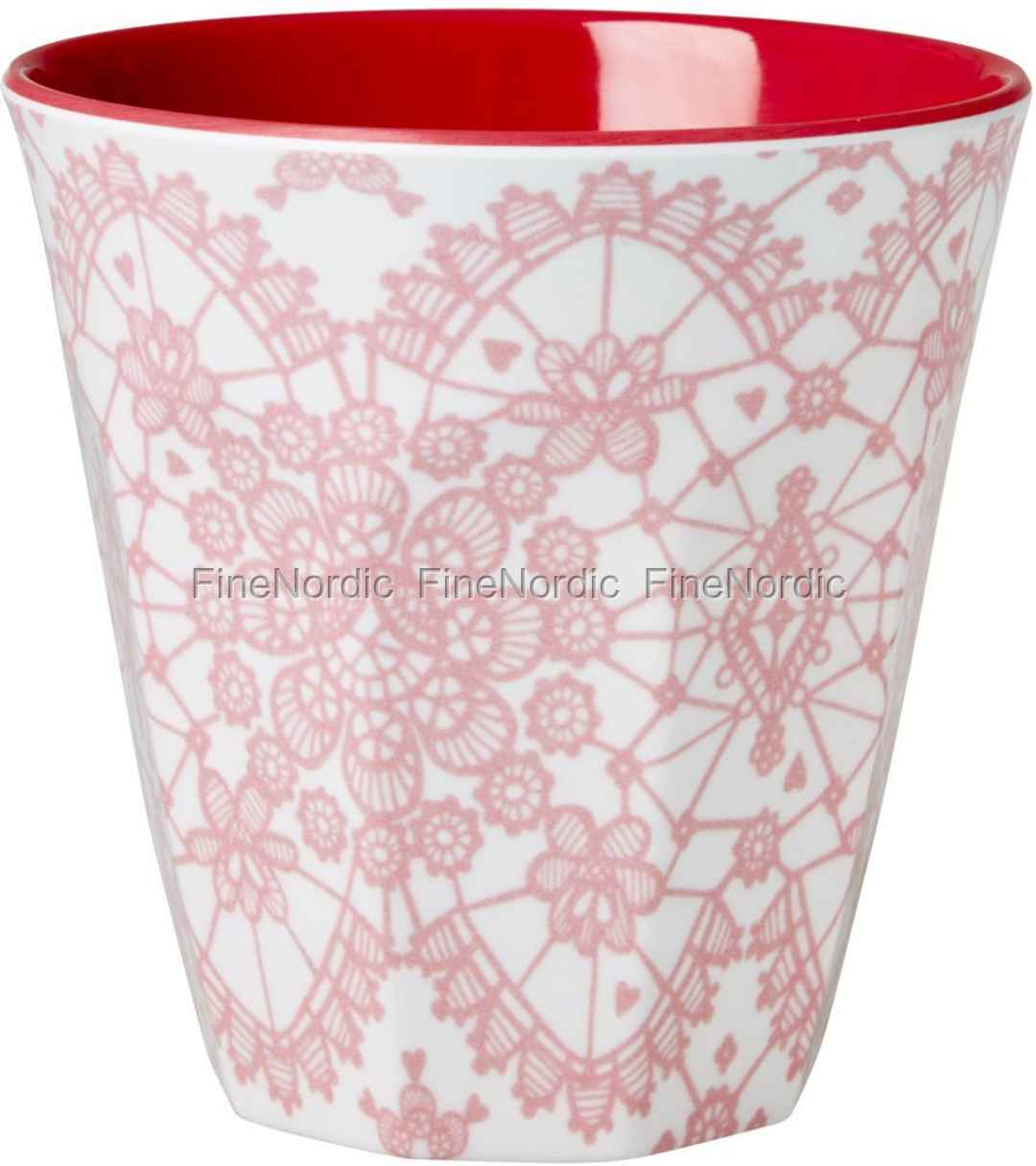 Melamin Becher - Melamine Medium Cup Two Tone - Lace Print Coral, von Rice.
