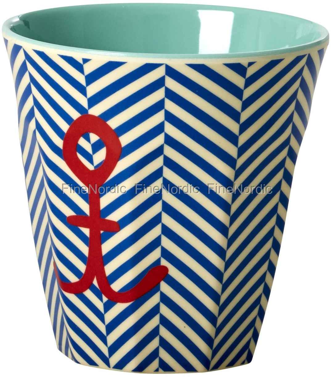 Melamin Becher - Melamine Medium Cup Two Tone - Sailor Stripe & Anchor Print, von Rice.
