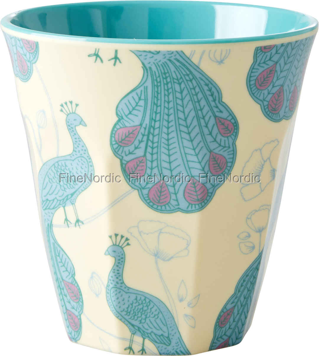 Melamin Becher mit Peacock Print - Two Tone - Medium, von RICE.