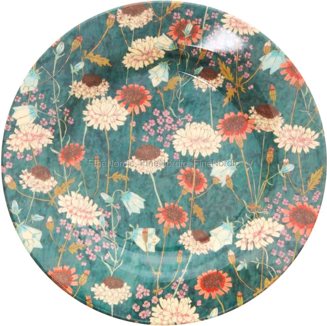 Ein schöner grüner Melamin-Teller mit schönen Blumen in herbstlichen Farben. Hier online kaufen, Melamin Beilagenteller mit Fall Flower Print, von Rice.