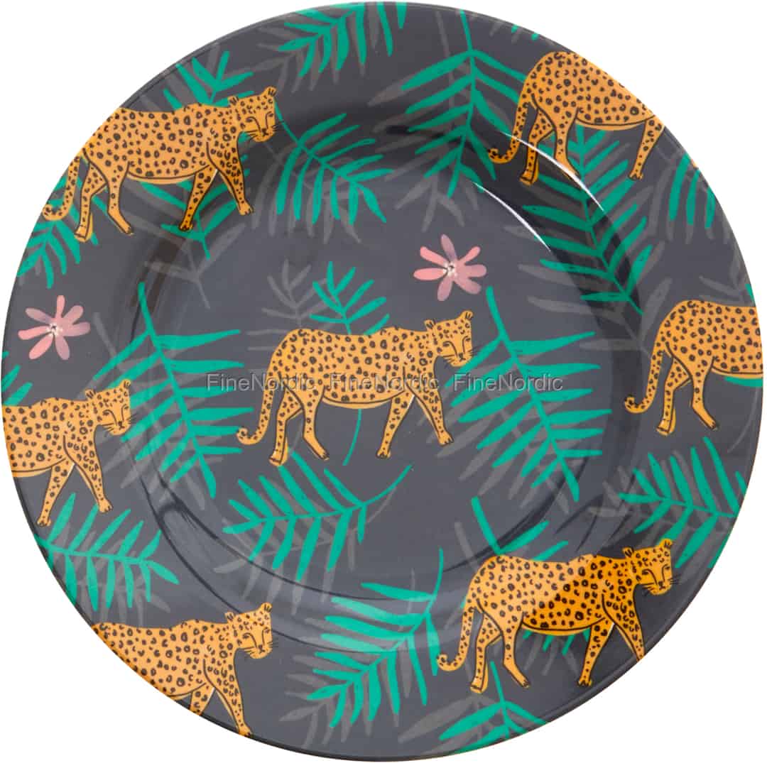 Lieben Sie wilde Tiere - dann sehen Sie sich diesen Melaminteller mit Leopardenmuster an. Hier online kaufen, Melamin Beilagenteller mit Leopard and Leaves Print, von Rice.