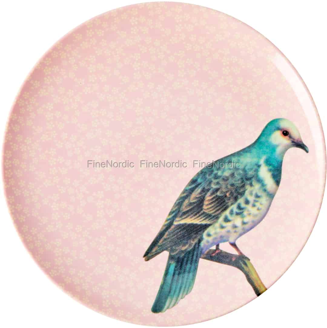 Rice Melamin Teller - Vintage Bird - Soft Pink