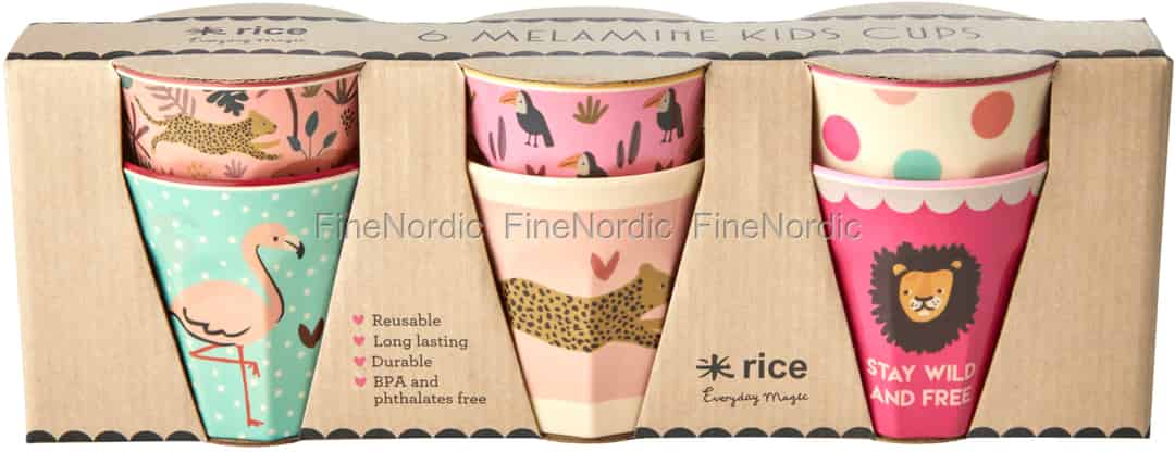 Rice Melamin Kinderbecher - Dschungel Tiere - Rosa - Klein - 6 Stück in Geschenkbox