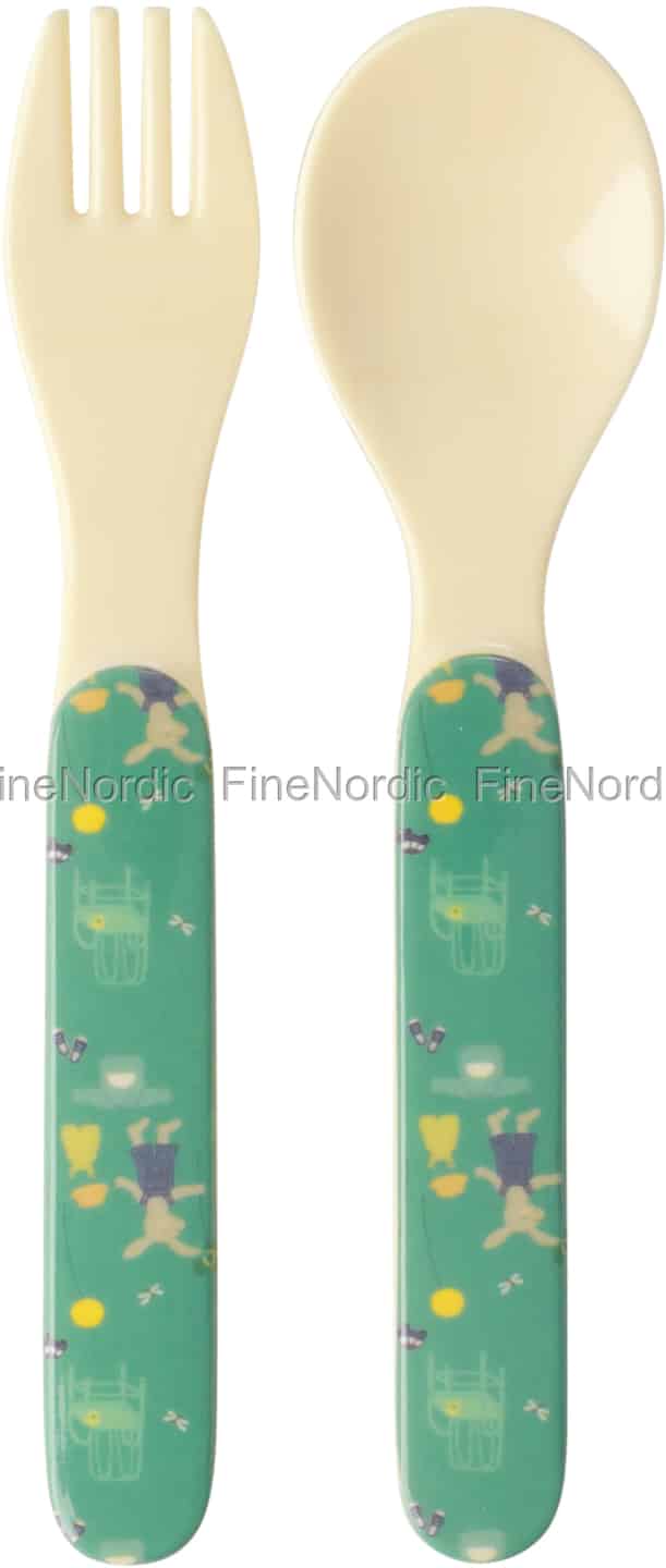 Rice Melamin Kinderlöffel und Gabel - Hase - Grün