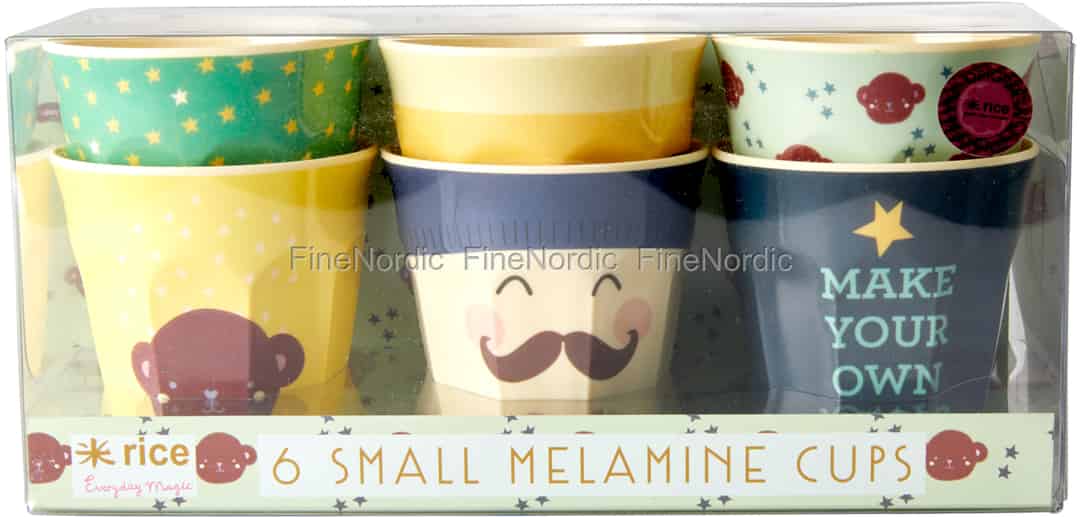 Dieses 6-teilige Melamin Kindertassen Set Monkey Prints von Rice bringt etwas Farbe und fröhliche Stimmung auf den Tisch. Jede Tasse hat einen anderen Aufdruck und jede hat eine Kapazität von 140 ml. Ist Ihre Lieblingstasse die, mit dem großen Affen Print oder bevorzugen Sie die Tasse mit den vielen kleinen Sternchen? Die Tassen sind jeweils 7 cm groß und haben einen Durchmesser von 7 cm. Sie sind spülmaschinenfest und können mit vielen anderen Rice Melamin Geschirrteilen kombiniert werden.