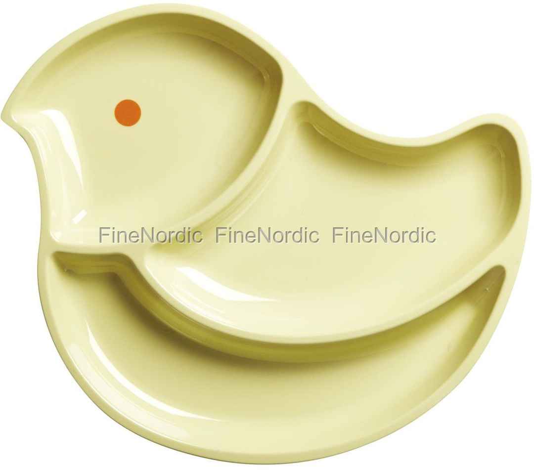Melamin Kinderteller mit 3 Fächern - Vogel - Pastellgelb, von Rice.