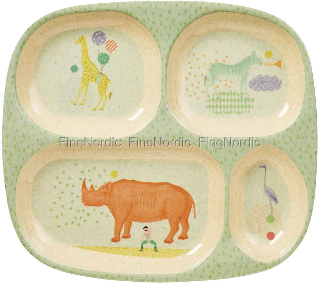 Melamin Kinderteller mit 4 Fächern - Bamboo Melamine Plate mit Boys Animal Print, von RICE.