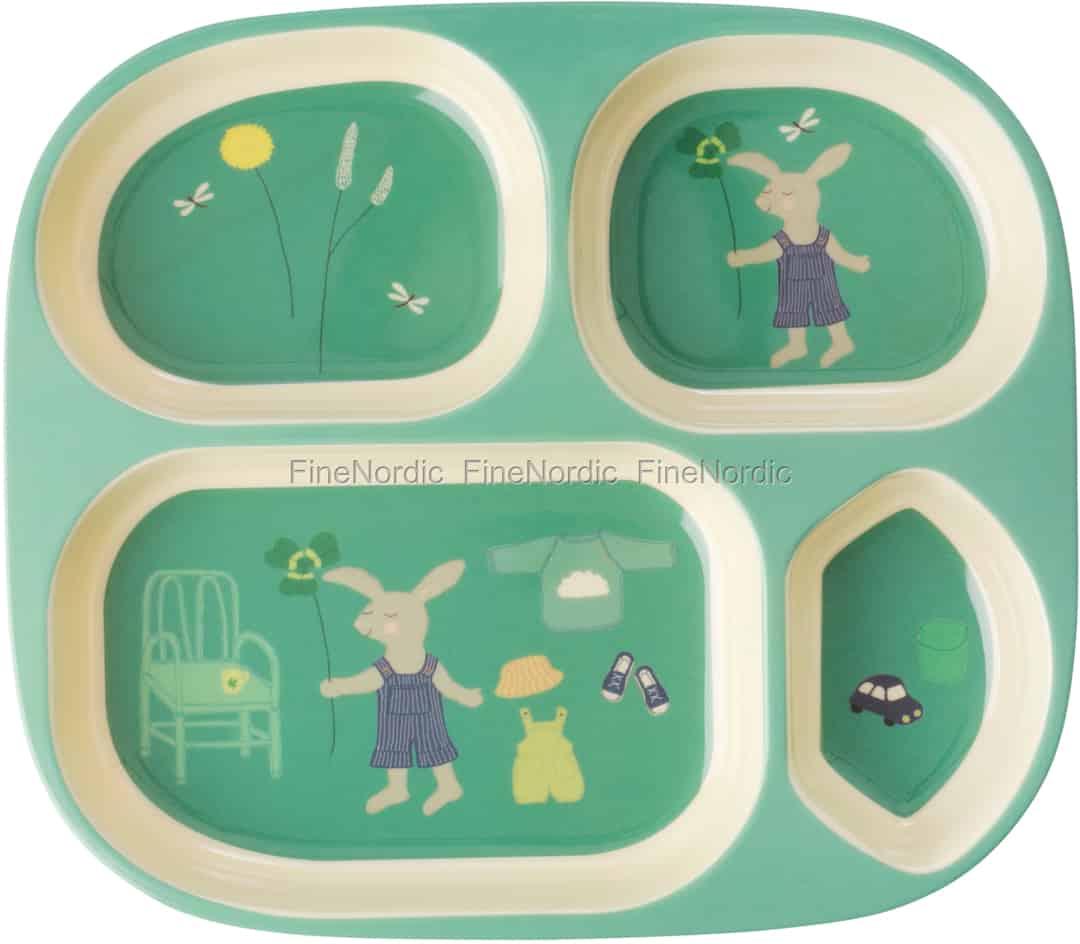 Rice Melamin Kinderteller mit 4 Fächern - Hase - Grün