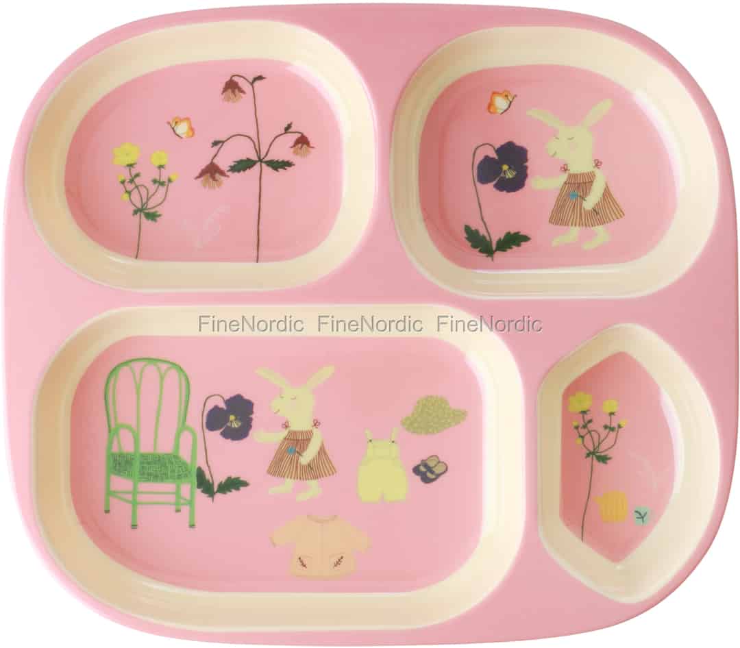 Rice Melamin Kinderteller mit 4 Fächern - Hase - Rosa