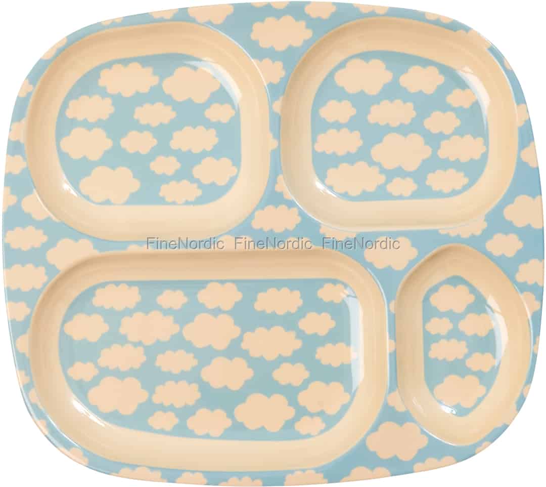 Melamin Kinderteller mit 4 Fächern mit Cloud Print - Hellblau, von Rice.