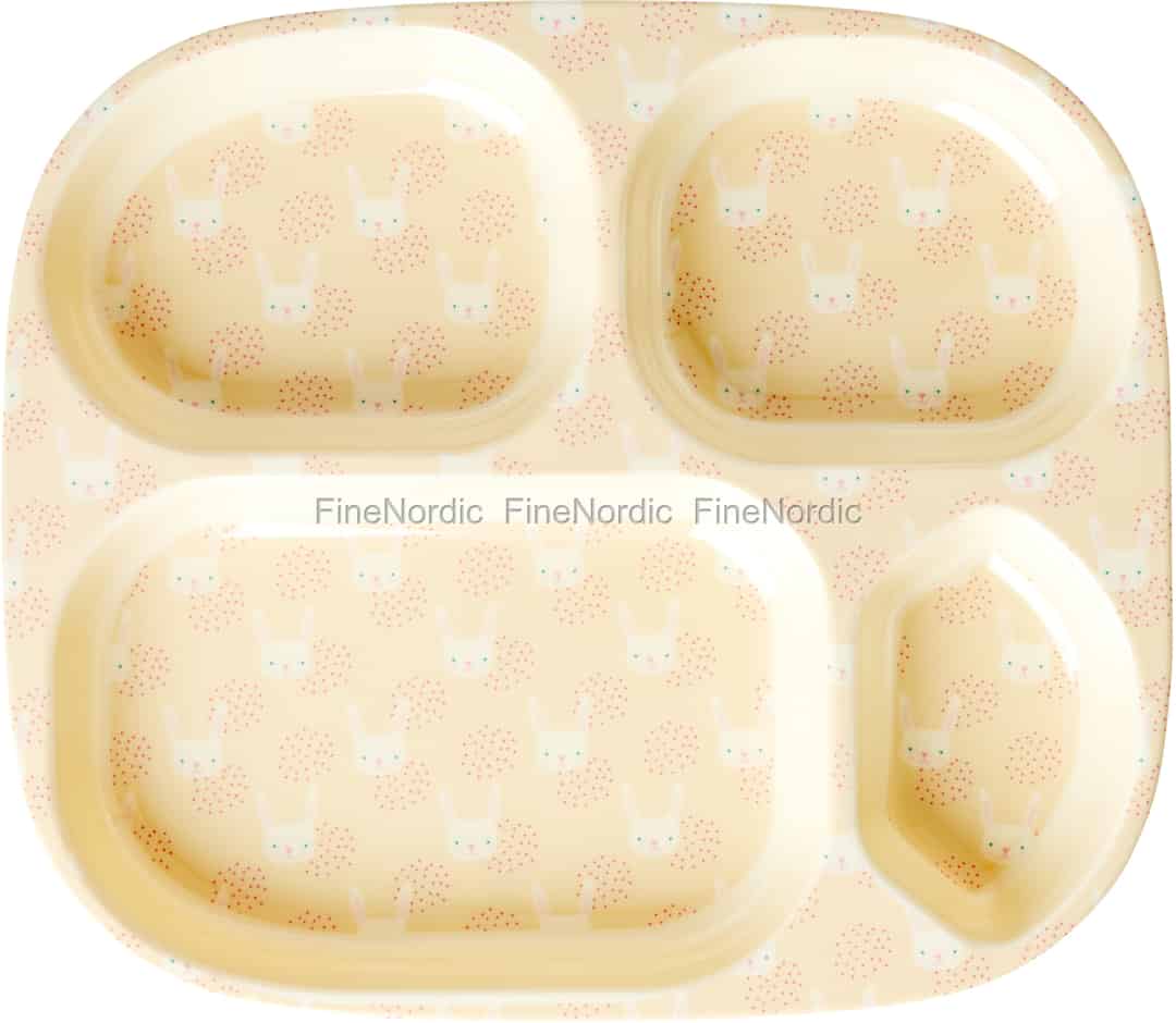 Dieser entzückende Melaminteller mit Rabbit Print von Rice ist der perfekte Teller für einen kleinen Jungen oder ein kleines Mädchen. Die vier Fächer halten das Essen schön getrennt, was pingelige Esser lieben werden. Der verspielte Print besteht aus Punkten und charmanten kleinen Häschengesichtern, die Sie vom Teller her anschauen. Der Teller misst 22 cm x 25 cm und damit können Sie Ihrem Kind sein Frühstück sowie Mittag- und Abendessen servieren. Der Teller ist spülmaschinenfest, was den Abwasch ganz einfach macht. Weniger Zeitaufwand zum Saubermachen bedeutet nämlich auch gleichzeitig mehr Zeit zum Spielen. Wenn Sie den Rabbit Print von Rice mögen, dann werfen Sie doch bitte auch einen Blick auf alle anderen passenden Melamin Geschirrartikel, die wir in unserem Webshop anbieten. Dieser Rabbit Print Melaminteller ist auch ein wunderbares Geburtstagsgeschenk für ein kleines liebes Menschenkind.