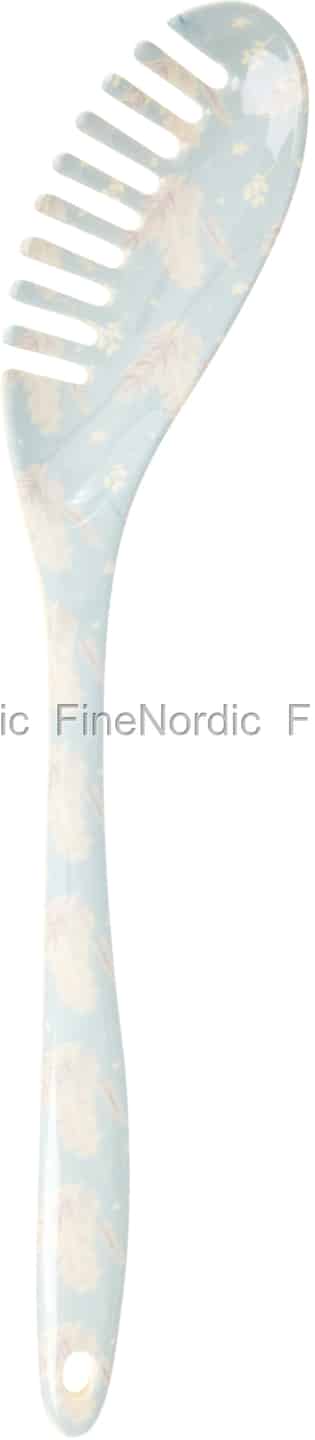 Ein eleganter und anderer Nudellöffel aus Melamin. Mit hellblauem Hintergrund und schönem Federmuster. Der Nudellöffel hat auch ein schönes Auge zum Aufhängen, da er fast zu fein ist, um nur in der Küchenschublade zu liegen. Hier online kaufen, Melamin Pastalöffel Simply Yes - Feather, von Rice.