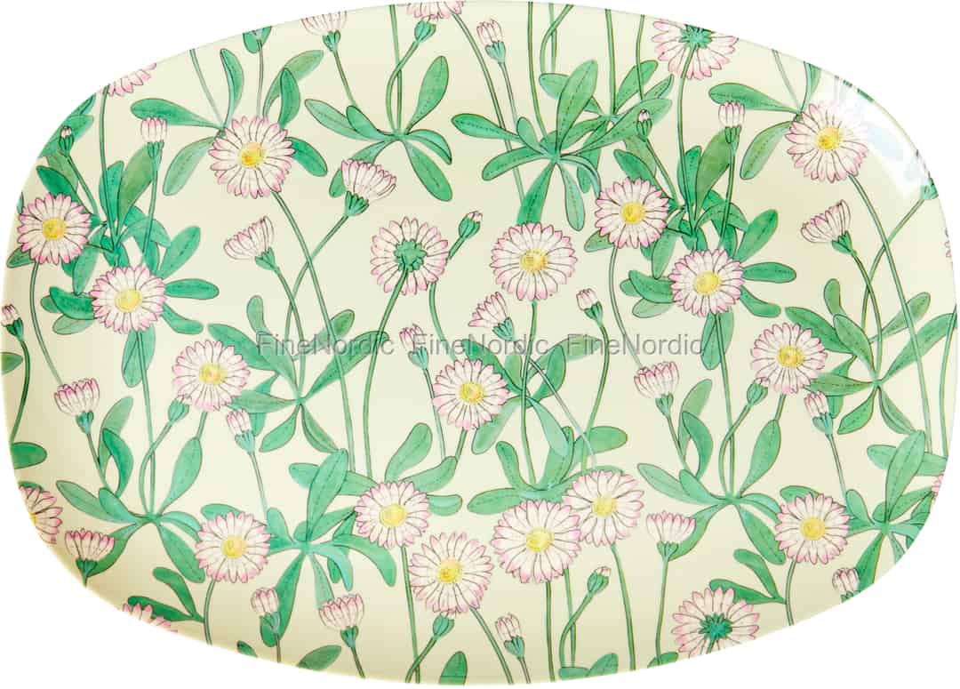 Der rechteckige Teller Daisy Print von Rice kann auf verschiedene Art und Weise verwendet werden. Sie können ihn als Teller, als Deko oder als Servierteller verwenden. Der Teller ist 30 cm x 22 cm groß und ist aus robustem Melamin gemacht. Ein wunderschönes Gänseblümchen Muster ziert diesen Teller, und dieser Daisy Print ist auch auf vielen anderen, in unserem Webshop erhältlichen, Geschirrteilen zu finden. Der Teller kann sowohl in Innen- als auch in Außenbereich genutzt werden. Aufgrund seines widerstandsfähigen Materials ist es auch in Ordnung, wenn kleine Hände ihn halten oder tragen möchten. Mischen und kombinieren Sie ihn mit den anderen wunderbaren Rice Prints, die wir in unserem Webshop anbieten, und decken Sie Ihren Tisch so bunt, wie Sie es gerne möchten.