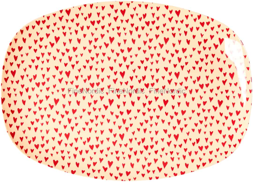 Dieser klassische rechteckige Melaminteller mit Small Hearts Print von Rice ist mit Hunderten kleiner roter Herzen bedeckt. Er ist sowohl praktisch als auch hübsch anzusehen und kann sowohl drinnen als auch draußen genutzt werden. Der Teller misst 30 cm x 22 cm und eignet sich hervorragend als Servierteller. Füllen Sie ihn mit Käsewürfeln und Trauben oder ein paar Gemüsesticks und einem leckeren Dip und servieren Sie sie Ihren Gästen. Bitte denken Sie daran, wir haben viele Rice Prints zur Auswahl in unserem Webshop und Sie können Ihren Tisch damit so bunt gestalten, wie Sie möchten.