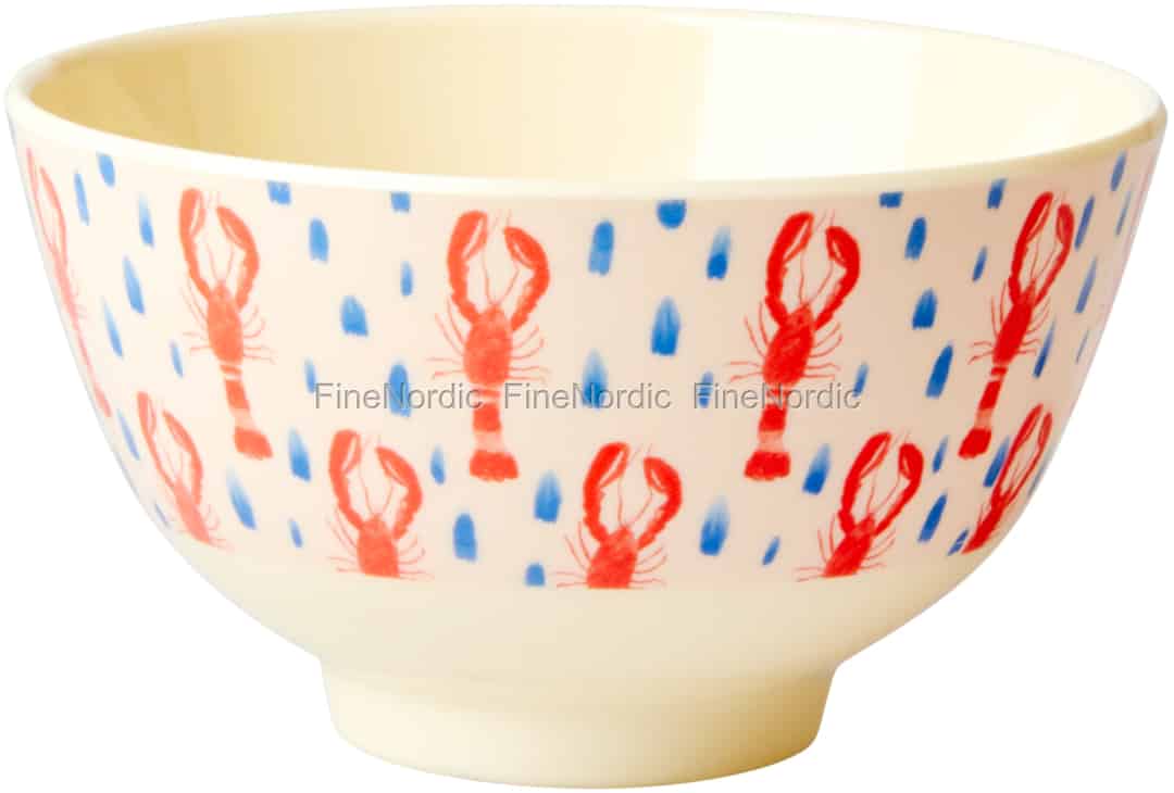 Klein aber oho, so kann man diese Lobster Print Schüssel von Rice wohl am besten beschreiben. Die Schüssel ist die perfekte kleine Snackschüssel und hat eine Kapazität von 300 ml. Füllen Sie sie mit köstlichen kleinen Snacks oder Leckereien und genießen Sie nach dem Abendessen eine Portion Süßes. Sie können sie auch für Dips und Saucen verwenden oder einem lieben Kleinen sein Essen darin servieren. Der obere Rand der Schüssel hat einen Durchmesser von 11 cm und die Höhe der Schüssel beträgt 6 cm. Sie ist spülmaschinenfest, was den Abwasch sehr einfach macht, besonders wenn ein Paar kleine Füße in Haus herumlaufen, um die Sie sich kümmern sollten. Weniger Zeit zum Saubermachen vergeuden, bedeutet nämlich mehr Zeit zum Spielen zu haben. Die Außenseite von der Schüssel ist mit einem leuchtenden Lobster Print bedeckt und die orangefarbenen Hummer sind von blauen Tupfern umgeben, welche ausschauen wie Wassertropfen. Die Innenseite und die untere Hälfte der Schale sind einfarbig und bilden einen schönen Kontrast zum Lobster Print. Wenn Ihnen dieser Print gut gefällt, dann sollten Sie sich unbedingt auch alle anderen Rice Produkte mit demselben Lobster Print in unserem Webshop anschauen. Dazu werden Sie außerdem auch ein Rice Kissen und eine Tasche mit diesem entzückenden Meeresbewohner drauf finden.