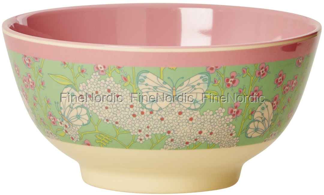 Melamin Schüssel - Melamine Bowl Two Tone Butterfly and Flower Print, von RICE.