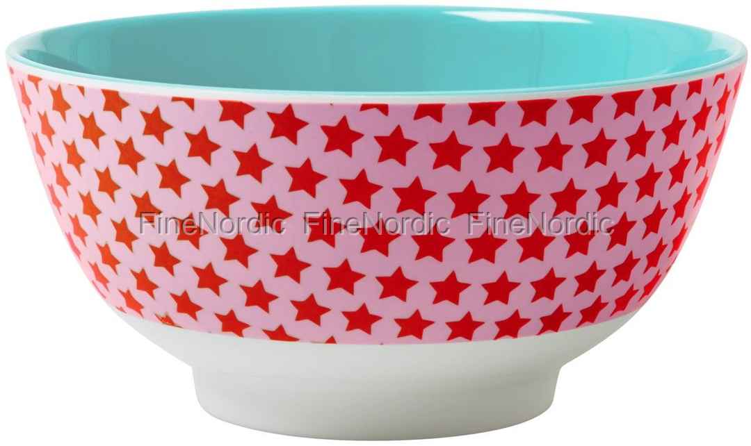 Melamin Schüssel - Melamine Bowl Two Tone - Girl Star Print - Mint/Red, von Rice.