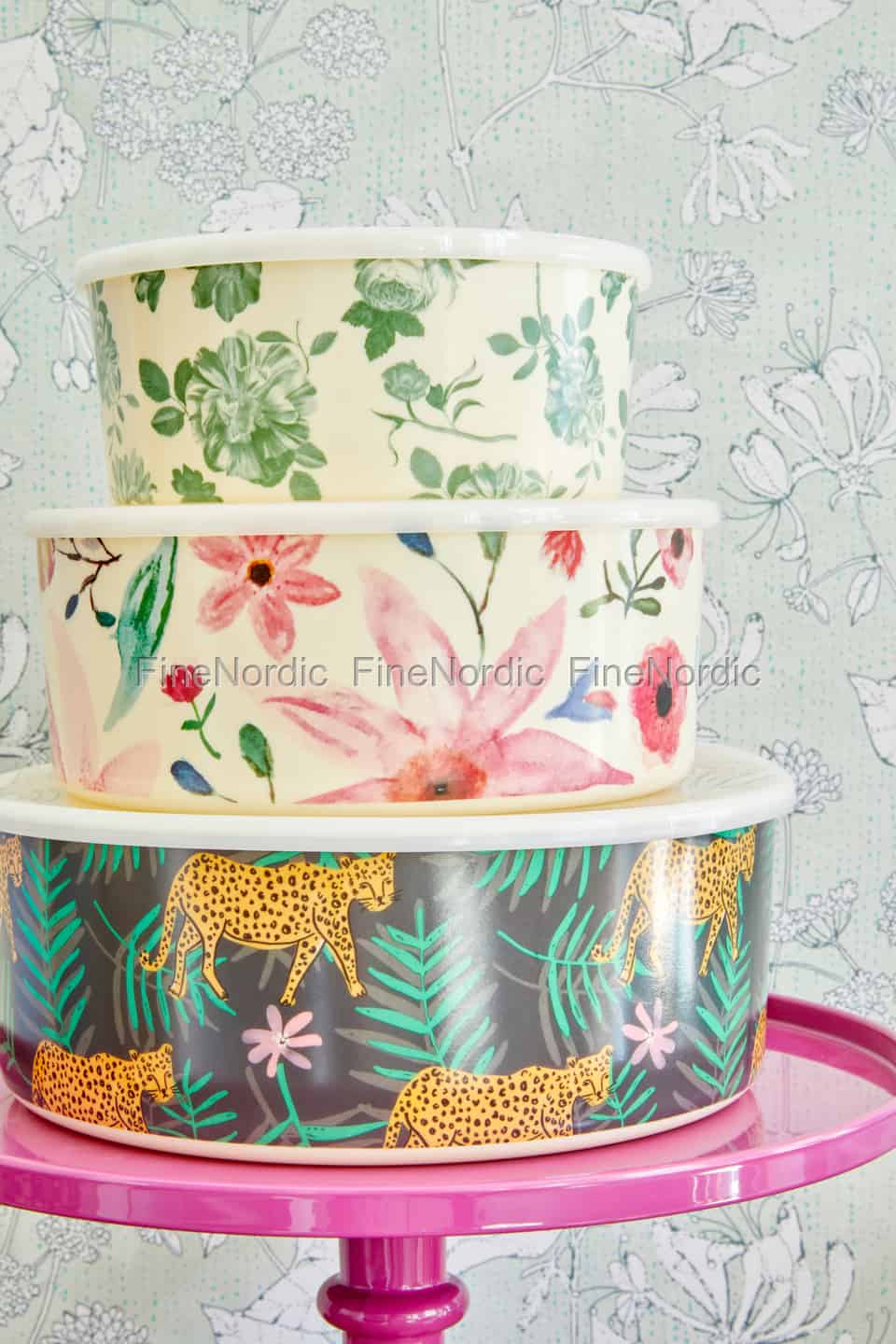 Hier online kaufen, Melamin Schüsseln mit Deckel mit Verschiedene Drucke - 3er Set, von Rice.