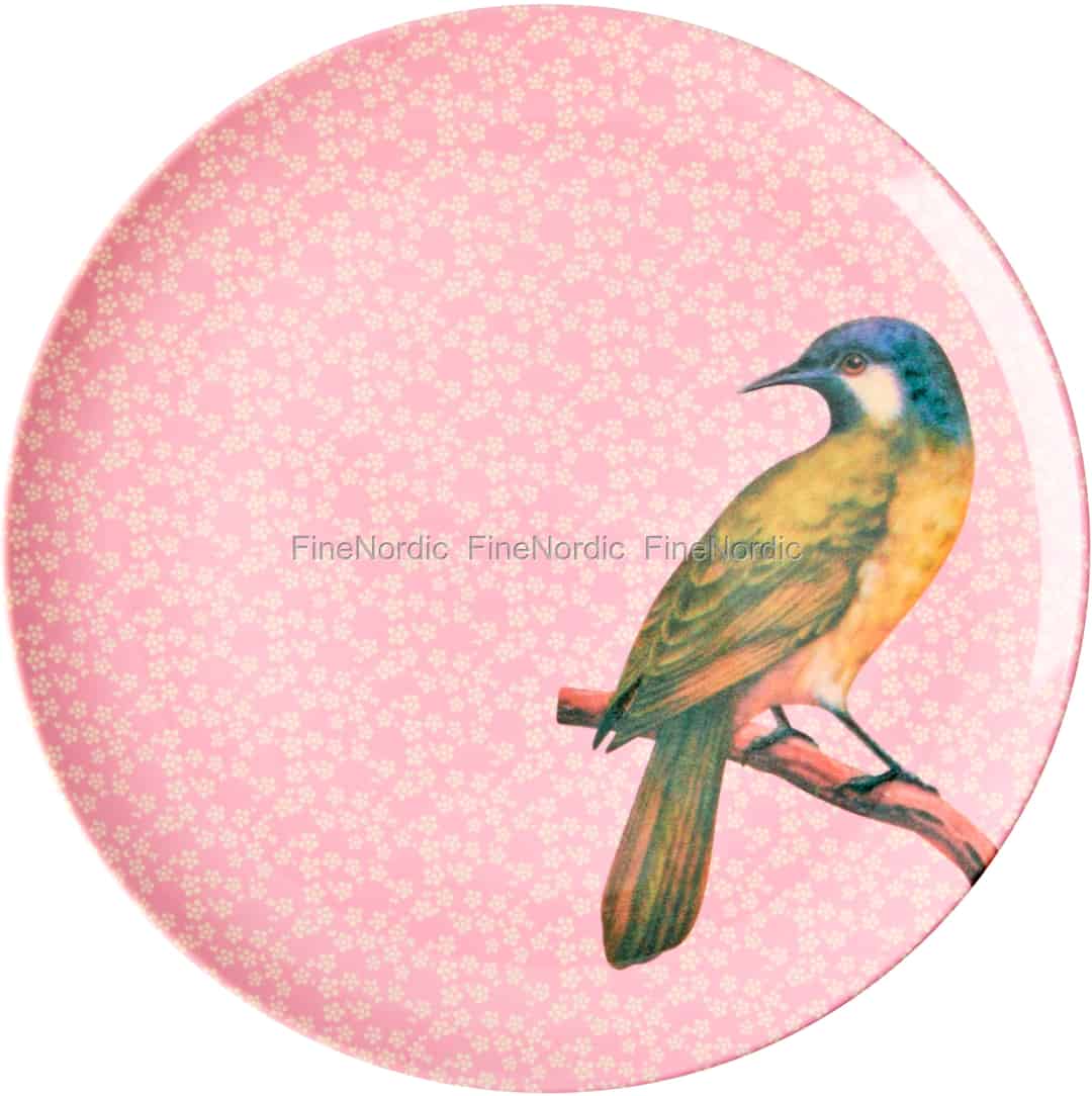 Hier online kaufen, Melamin Speiseteller mit Vintage Bird Print - Rosa, von Rice.