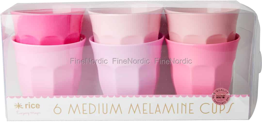 Melamin Tassen in Assorted 50 Shades of Pink Farben - Medium - 6er Set, von Rice.