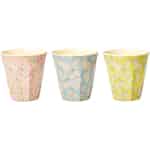 Zu Geburtstagen, Partys, Campingausflügen und im Alltag sind die Melaminprodukte von Rice immer ein willkommener Anblick. Warum, fragen Sie? Wir erklären es Ihnen gerne. Sie sind von ausgezeichneter Qualität, ihre fantastischen Farben verbreiten Spaß und gute Laune, sie sind aus strapazierfähigem Melamin hergestellt und Sie können den Tisch mit den vielen verschiedenen Prints und einfarbigen Produkten so bunt decken, wie Sie möchten. Schauen Sie sich doch nur mal dieses 3-teilige Tassen Set mit dem Small Flower Print von Rice an. Die Tassen kommen in drei verschiedenen Farben und alle haben sie den gleichen hübschen Flower Print. Jede Tasse hat ein Fassungsvermögen von 225 ml und Sie können sie für mehr als nur Trinkgefäße nutzen. Sie können klein geschnittenes Obst oder Gemüsesticks in einer Tasse servieren, Sie können die Buntstifte Ihres Kindes in der zweiten Tasse aufbewahren und in der dritten Tasse können Sie ein kleines Blümchen pflanzen. Die Tassen können sowohl drinnen als auch draußen verwendet werden. Schauen Sie sich gerne die reichliche Auswahl in unserem Webshop an, die Möglichkeiten sind endlos!