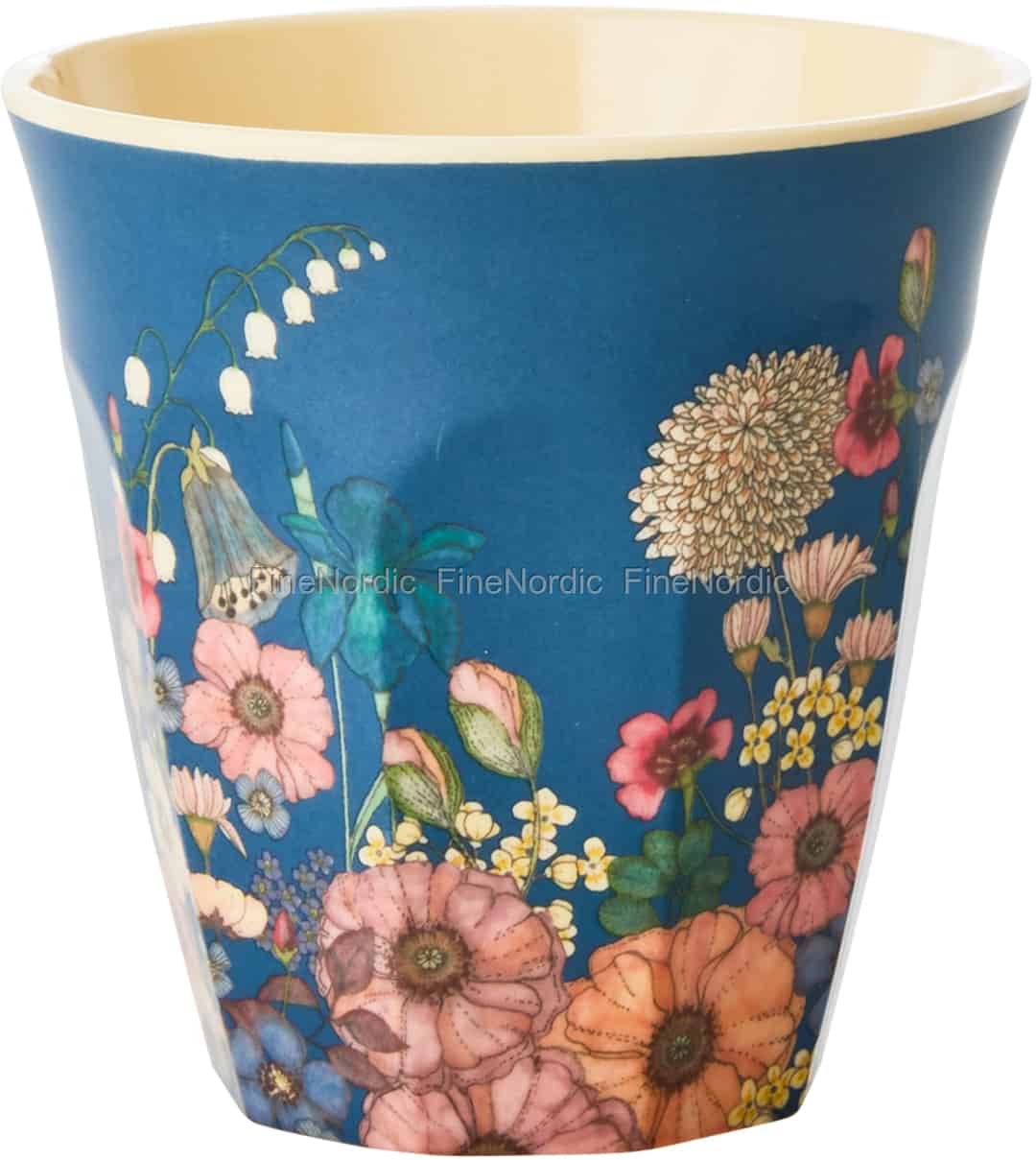 Schöne blaue Melamin-Tasse mit Blumenmuster in mittlerer Größe aus der Melamin-Serie von RICE. Sehen Sie unsere schöne Auswahl an RICE-Melamin und kombinieren Sie diese Tasse mit vielen anderen feinen RICE-Motiven. Hier online kaufen, Melamin Tasse mit Flower Collage Print - Medium, von Rice.