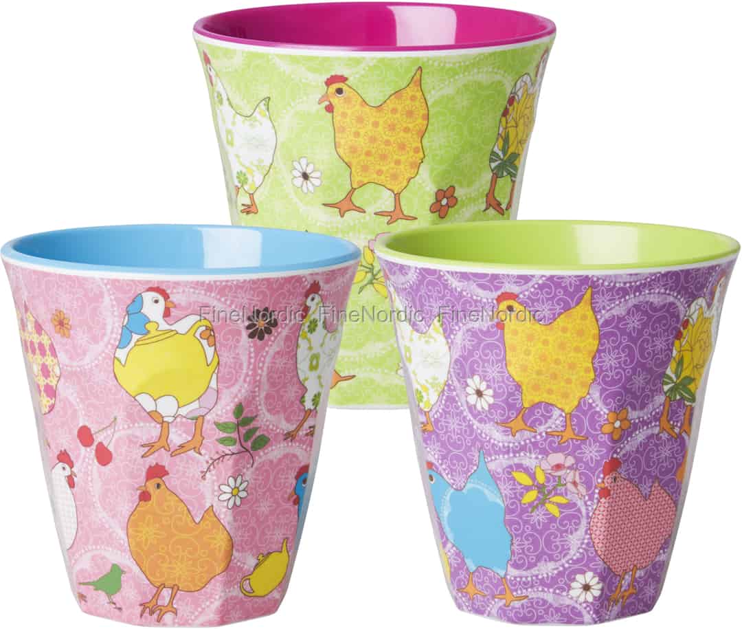 Dieses 3-teilige Tassen Set mit Hen Print von Rice kann niedlicher gar nicht sein. Auf jeder Tasse sieht man ganz viele Hennen auf jeweils einem andersfarbigen Hintergrund abgebildet. Das Innere der Tassen ist einfarbig und sie haben je eine Kapazität von 225 ml. Die Tassen können auf ganz viele verschiedene Arten und Weisen verwendet werden: Nutzen Sie sie als Trinkbecher, oder für eine kleine Zwischenmahlzeit, als Aufbewahrungsmöglichkeit oder als kleinen Übertopf oder was auch immer sonst Ihnen einfallen mag. Sie können sie mit dem anderen Rice Hen Print Geschirr kombinieren oder sie mit anderen Rice Tassen mischen. Gestalten Sie Ihren Tisch so bunt und interessant, wie Sie es möchten.