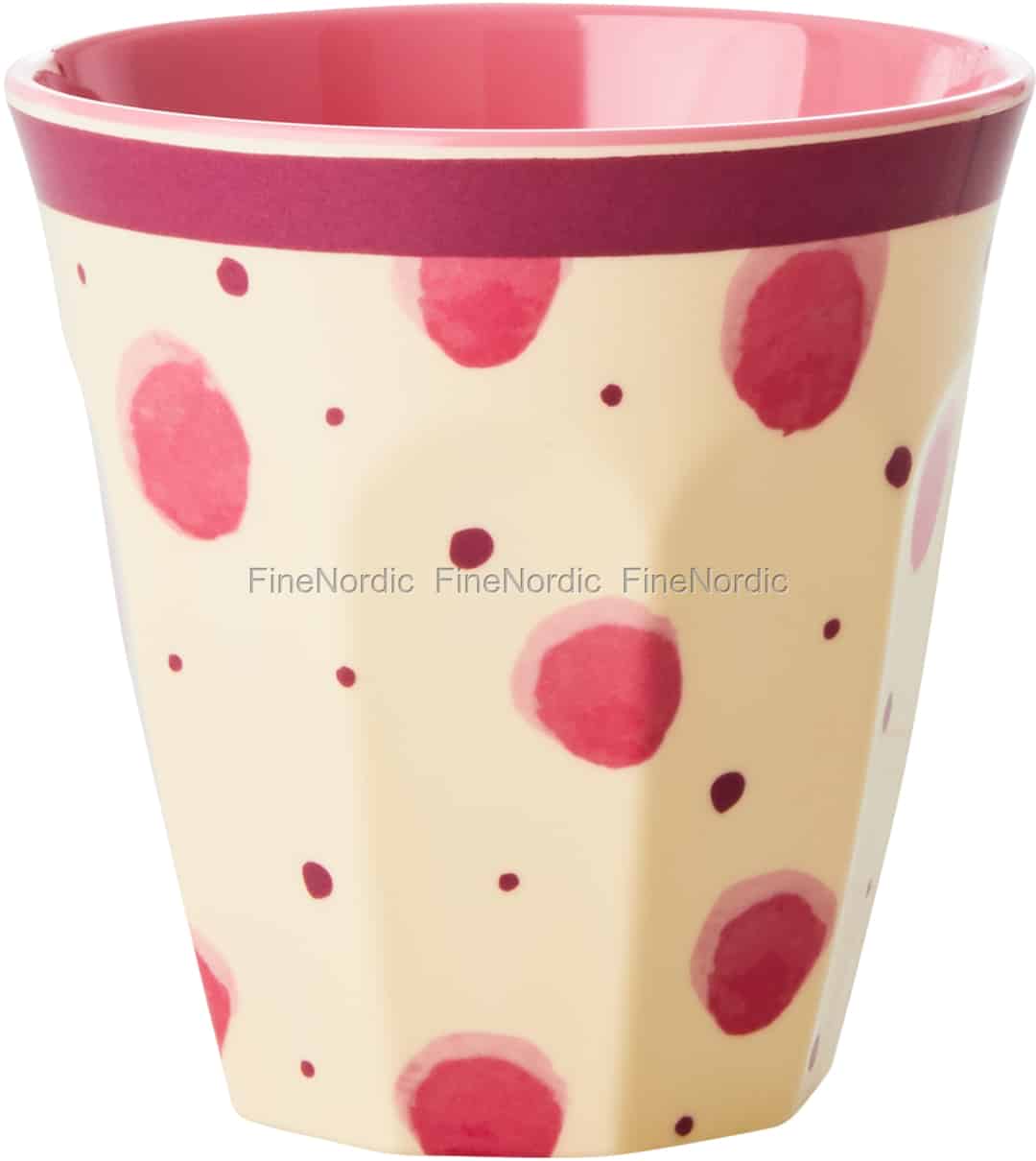 Wir geben RICE viele Punkten für den künstlerischen Ausdruck hier auf dieser Melamin-Tasse mit rosa Punkten. Als wären sie mit Wasserfarben bemalt - daher der Name der Tasse. Hier online kaufen, Melamin Tasse mit Pink Watercolor Splash Print - Two Tone - Medium, von Rice.