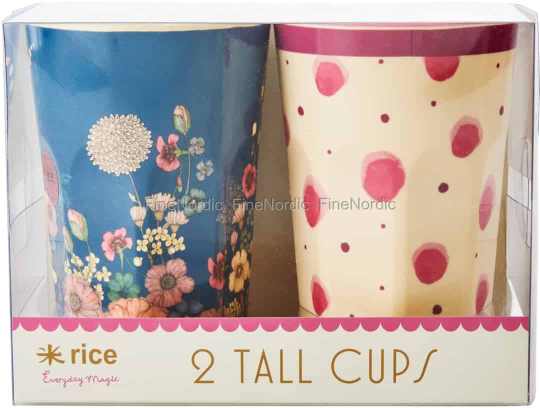 Rice Melamin Becher - Pink Watercolor Splash and Blumencollage - Tall - 2er Set