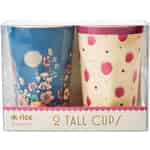 Dies ist ein feines Set aus 2 Bechern mit hohem Melaminanteil in 2 Mustern - und farblich abgestimmt. So ist der Blumendruck zusammen mit dem "Aquarell" Druck ziemlich groß. Das Set wird in einer schönen Schachtel geliefert, daher halten wir es für eine offensichtliche Geschenkidee für einen RICE-Fan. Auf den Bildern sehen Sie die Tassen sowohl in ihrer Box als auch einzeln. Hier online kaufen, Melamin Tassen mit Pink Watercolor Splash and Flower Collage Print - Tall, von Rice.