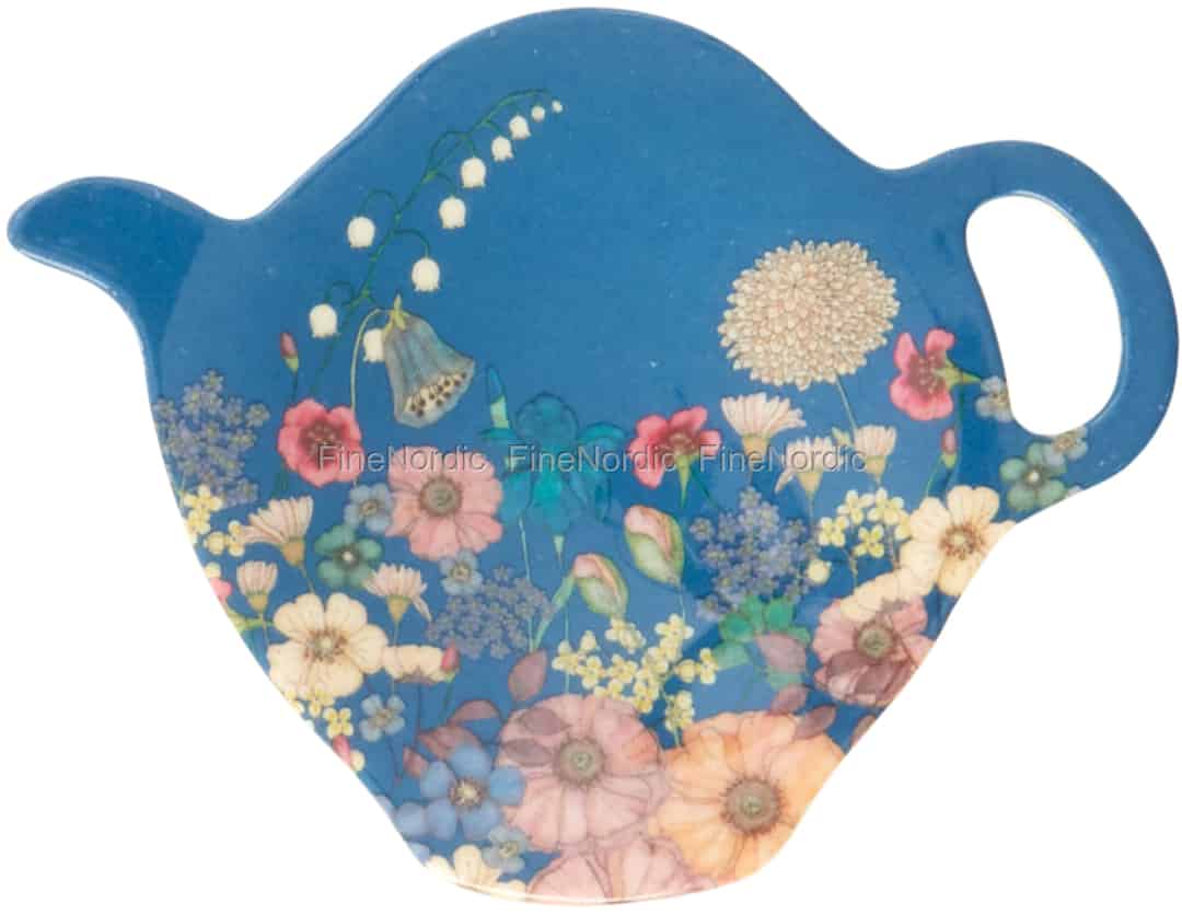 Suchen Sie einen blauen Teebeutelhalter aus Melamin - mit Blumen - in Form einer Teekanne? Hier ist es! Hier online kaufen, Melamin Teebeutelteller Simply Yes - Flower Collage, von Rice.