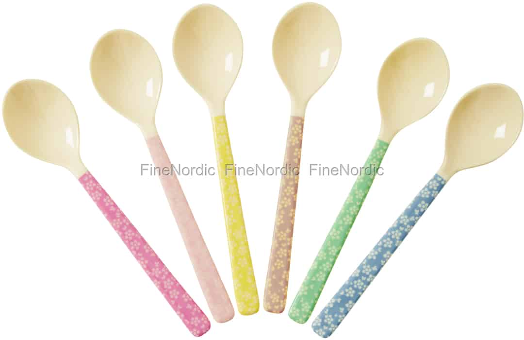 Dieses 6er Set Melamin Teelöffel von Rice kommt mit einem hübschen Blumenprint und sechs verschiedenen schönen Pastellfarben. Verwenden Sie sie als Fütterungslöffel um ihr kleines Kind zu füttern, als Servierlöffel für Dips und Salsas bei der nächsten Party, oder als Eierlöffel um ein weich gekochtes Ei aus der Schale zu löffeln. Sie können auch als Marmeladenlöffel oder Honiglöffel verwendet werden, oder für was auch immer sonst die Verwendung eines Löffels erforderlich ist. Schauen Sie sich gerne mal die große Auswahl an Rice Melaminlöffeln an, die wir anzubieten haben. Wir haben einfarbige und gemusterte Löffel, einzelne Löffel oder Löffelsets, sowie Kochlöffel und Pastalöffel. Mit den Melaminlöffeln von Rice können Sie ein bisschen Farbe und viel Freude auf Ihren Tisch bringen.