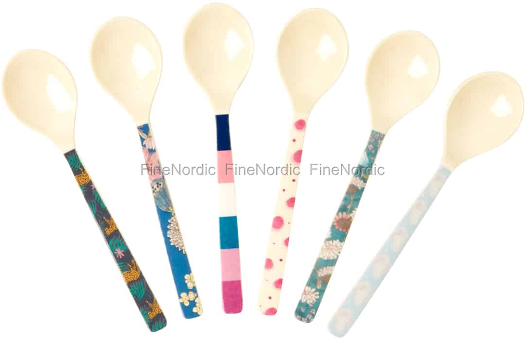Hier sind 6 wunderschöne Melaminlöffel von dänischer RICE. Das Set besteht aus 6 verschiedenen Löffeln der Serie "Simply Yes" (siehe Abbildung hier). Hier online kaufen, Melamin Teelöffel Simply Yes 6er Set, von Rice.