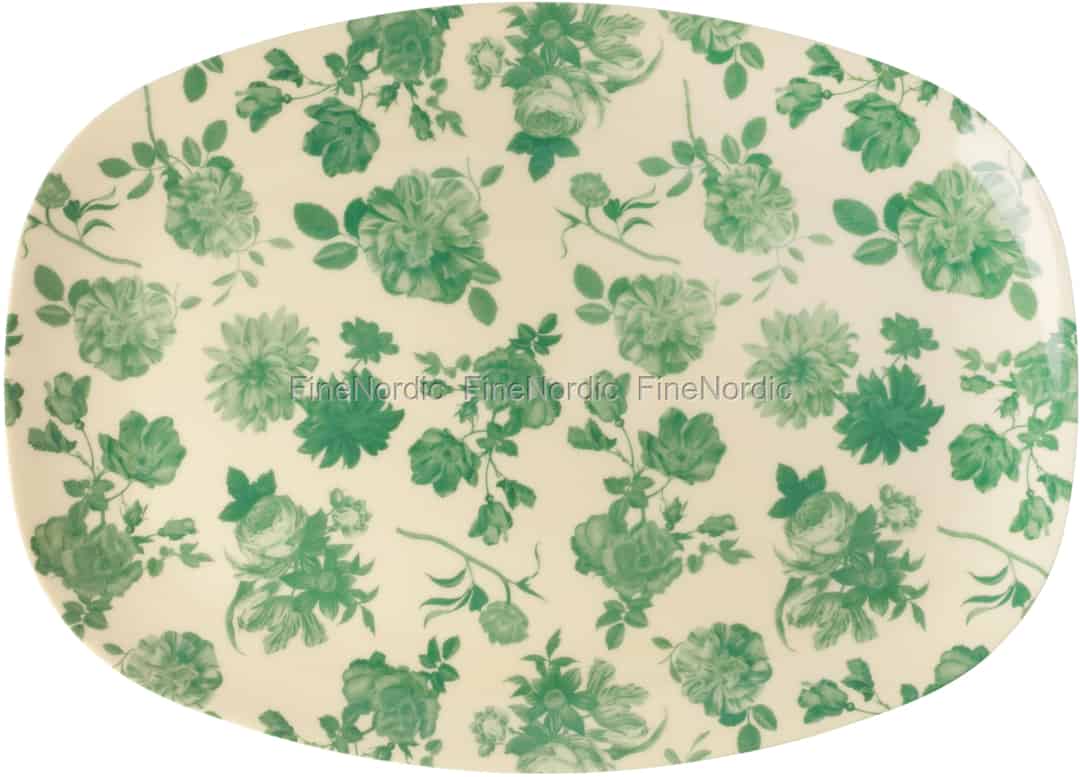 Hier online kaufen, Melamin Teller - Oval - Grüne Rosen, von Rice.